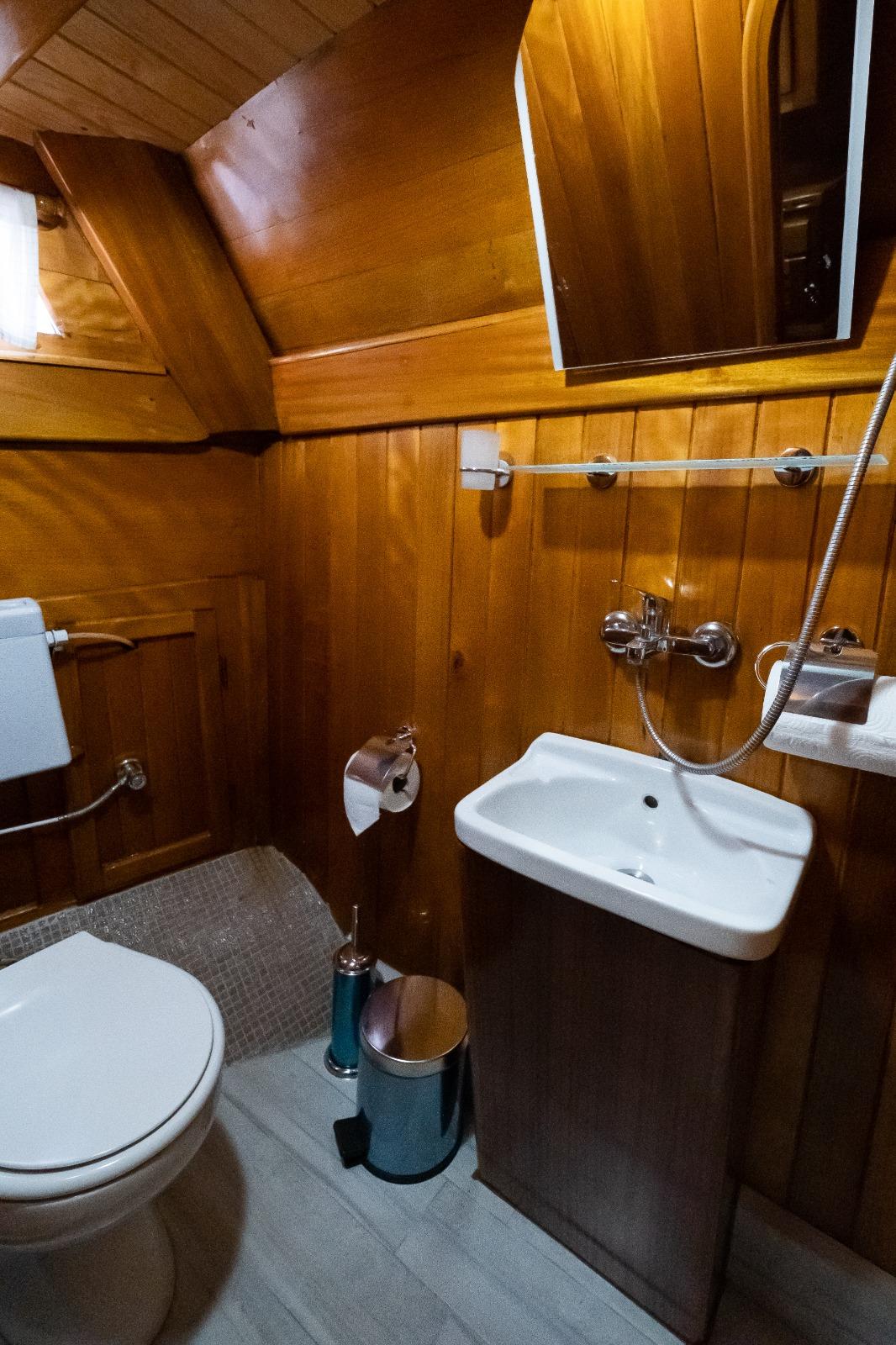 Each cabin on Gulet Pronto White has its own private bathroom (en-suite bathroom), ensuring privacy and comfort for every guest throughout the Standard Blue Cruise Fethiye. The interior is bright and airy; a warm atmosphere is created using the natural beauty of wood. The main salon serves as a social hub for dining or relaxing indoors.