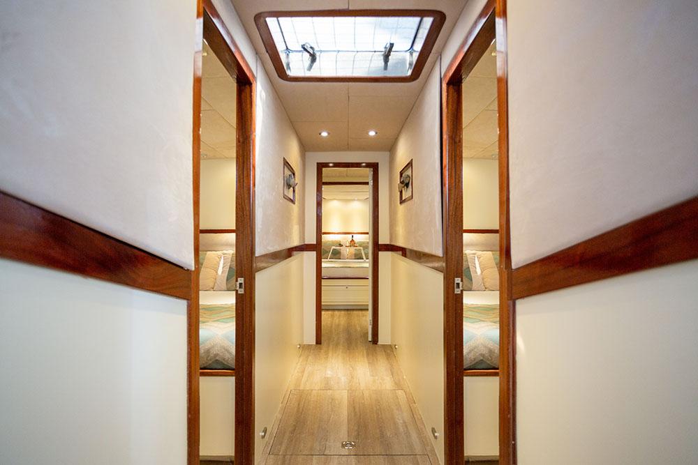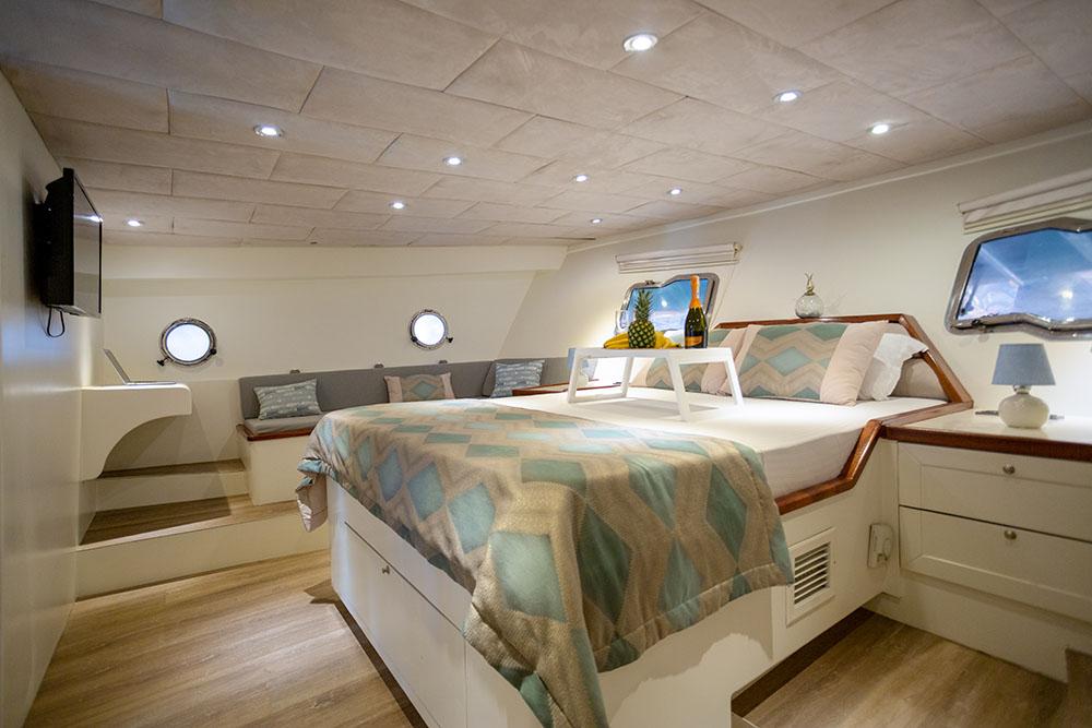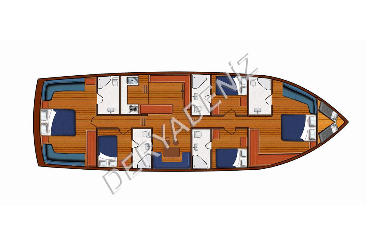 Derya Deniz, seçici grupları mutlak konfor içinde ağırlamak üzere ustaca yapılandırılmıştır ve 5 zarif kabine sahiptir. Düzen, iki gösterişli Master Kabin ve üç konforlu Çift Kişilik Kabin içerir, hepsi en-suite banyolarla donatılmıştır. İki tam Master Kabinin mevcudiyeti, birden fazla ana süit gerektiren gruplar için yatı ideal kılan, tüm ana misafirlerin en üst düzeyde konaklama almasını sağlayan birinci sınıf bir özelliktir.